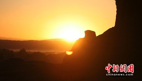 6月8日,新疆克拉玛依魔鬼城夕阳西下的场景蔚为壮观。近年来,由于魔鬼城新发现油气资源,使其不仅成为旅游观光的圣地,更是近年来油气开发的新大陆。中新社发 陶拴科 摄