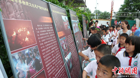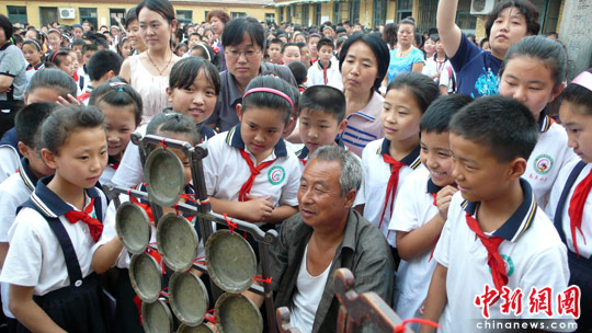 6月9日下午,任丘市非物质文化遗产进校园活动深入到新华路南关小学,为1100名小学生带来一场丰厚的非物质文化遗产大餐,金洁 摄