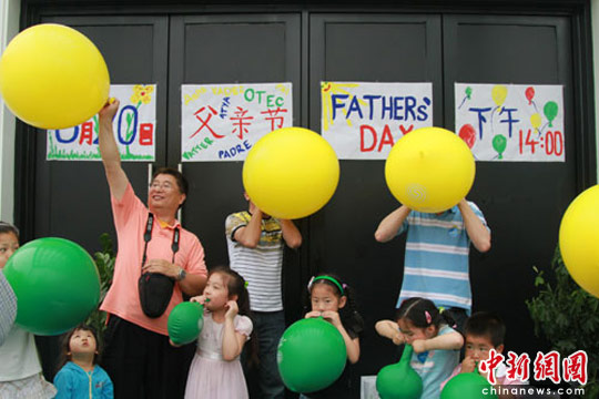 6月20日是父亲节,上海世博园多座场馆举行由父亲和儿女参加的互动活动,表达子女对父亲的感恩之情。