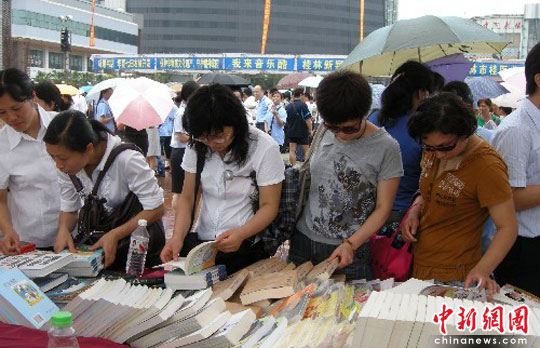 6月23日,第四届桂林读书月启动,活动期间将举行“图书漂流活动”、走读桂林文化系列活动、桂林市青少年FLASH科普作品创作大赛等13项主题活动,丰富市民文化生活。图为市民在选购图书。中新社发 伍章明 摄