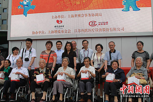 6月24日,上海增爱基金会携手江苏鱼跃医疗设备股份有限公司向上海世博会事务协调局捐赠1000辆轮椅。这继4月18日和5月11日之后,增爱基金会第三次捐赠,三次累计捐赠了2000辆,用于帮助参观世博会行动不便的老年人。中新社记者 殷春永 摄