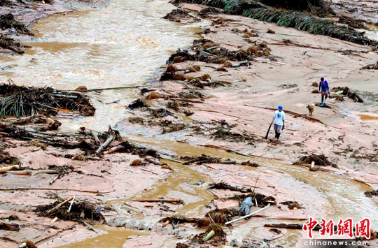 6月26日,福建省顺昌县洋口镇逾八百亩良田已被洪水冲毁。6月13日起,闽北地区持续遭受强降雨袭击,顺昌山洪暴发,国道、高速公路、铁路、通信等对外联络全部中断,顺昌县在18日晚至19日凌晨一夜间成为“孤岛”。洋口镇田坪村是此次顺昌受灾最重的地区之一。中新社发 刘可耕 摄