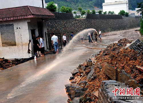 6月26日,闽北顺昌一大型企业员工在厂区开展灾后清淤,力争尽早恢复生产。6月13日起,闽北地区持续遭受强降雨袭击。18日晚至19日凌晨,顺昌山洪暴发,国道、省道、高速公路、铁路、通信等对外联络全部中断,整个顺昌县一夜间成为“孤岛”。 据不完全统计,全县居民房屋、路、渠、电、讯和工农业生产受灾极其严重。刘可耕 摄