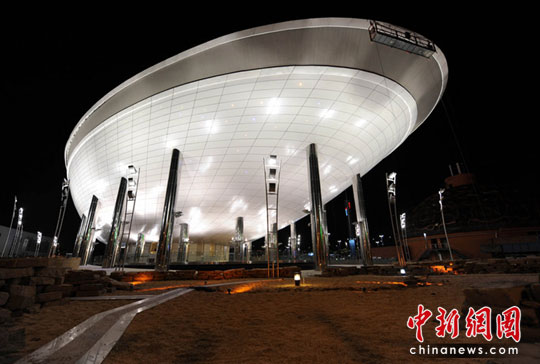 4月8日,上海世博会园区各大洲国家展馆的建设和布展绝大多数已经进入尾声。图为世博轴太阳谷在水中的夜景。梁臻 摄