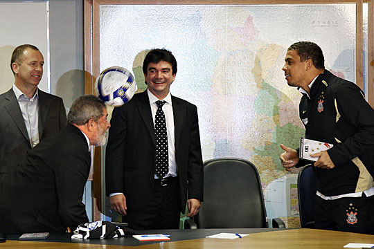 5月12日,巴西总统卢拉在自己官邸接见了效力于科林蒂安的罗纳尔多。在接受总统接见时,罗纳尔多亲手将自己的战袍送给了卢拉。更让人意想不到的是,由于太过兴奋,两人开始在屋内大秀头球技术。