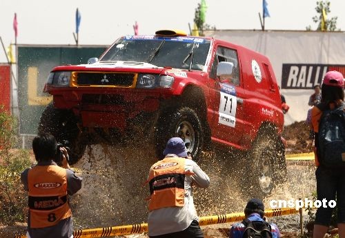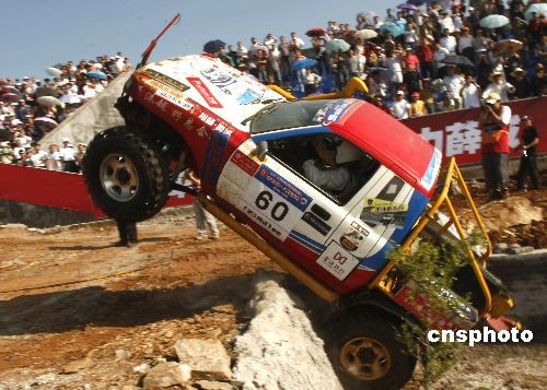 2009年全国汽车场地越野锦标赛“车神奚仲、八亿轮胎杯” 5月23日在山东省枣庄市薛城区杨峪风景区举行,来自山东、北京、广东、河南、河北、湖南、湖北、浙江和香港的20支车队、75辆赛车、77名车手参加比赛,比赛组别包括汽油组、柴油组、新秀组和无限改装组。中新社发 赵振清 摄
