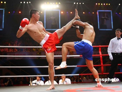 6月2日晚,规模最大、竞技水平最高的武术散打赛事——首届中国武术散打超级联赛(CKA)在北京大学生体育馆拉开战幕,赛事汇聚到由目前中国顶尖散打选手组成的六支代表队争夺总冠军,奖金总额高达三百万元。本届联赛选择了北京、河南、山东、江苏、安徽、广东六个国内散打运动开展得较为全面的地区的选手,分别组成代表各地区的队伍,依照体重分为五个级别,最终决出国家级散打团体最高荣誉和个人最高荣誉。中新社发 富田 摄