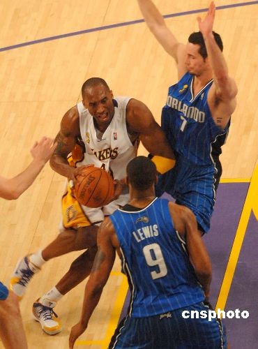 当地时间6月7日下午,NBA总决赛第二场比赛在洛杉矶打响。最终,湖人在主场通过加时以101-96击败魔术,总比分以2-0领先。中新社发 张炜 摄