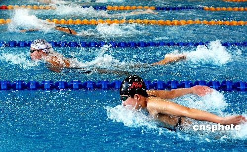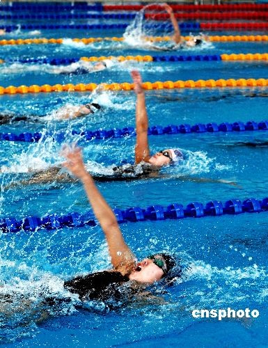 6月25日,为期五天的第十一届全运会游泳预选赛暨2009年全国青年游泳锦标赛落下帷幕。本次比赛为第十一届全运会游泳决赛的资格赛,分别在天津和大连两个赛区举行,达标运动员取得了将于今年十月份举行的全运会游泳决赛的资格。天津赛区有江苏、浙江、安徽、福建、广东等14支代表队的252名选手报名参赛;大连赛区有北京、辽宁、上海、贵州、解放军等12支代表队的314名选手报名参赛。中新社发 刘德斌 摄