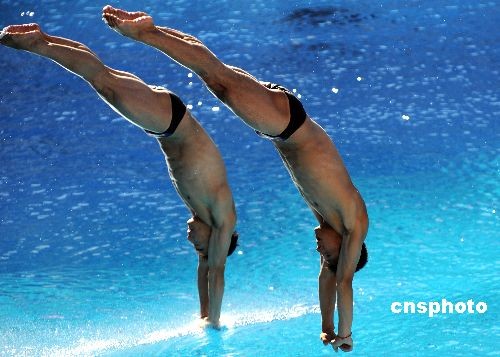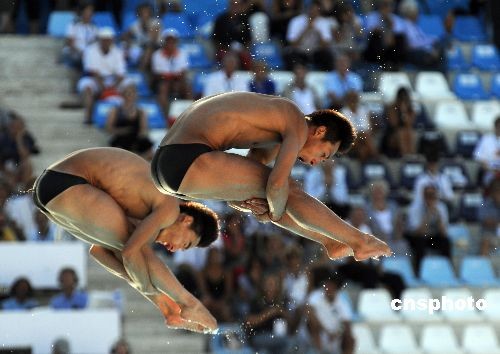 罗马当地时间7月18日傍晚,中国跳水选手王峰、秦凯夺得罗马世锦赛男子双人三米板冠军,这是王峰、秦凯连续三次获得世界大赛男子双人三米板冠军。中新社发 廖攀 摄