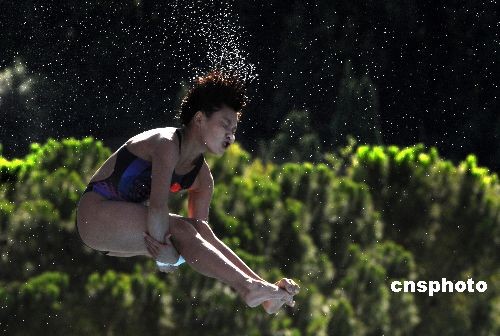 7月18日,中国选手康丽夺得罗马游泳世锦赛女子单人十米跳台铜牌,墨西哥选手葆拉-埃斯皮诺萨获得冠军。中新社发 廖攀 摄