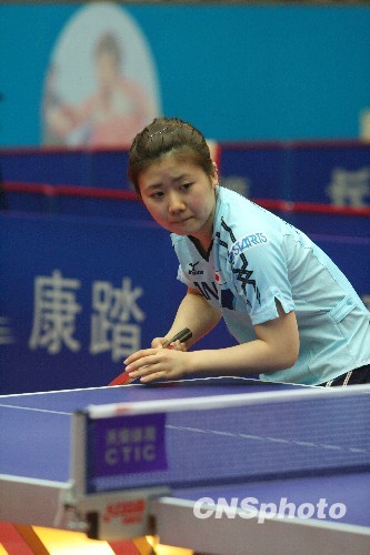 8月14日,2009年国际乒联职业巡回赛中国乒乓球公开赛正赛阶段的比赛在天津市人民体育馆打响。在下午进行的女子单打首轮比赛中,日本超人气乒乓球运动员福原爱4:0轻取中华台北选手熊乃仪,晋级第二轮。中新社发 郭晓帆 摄
