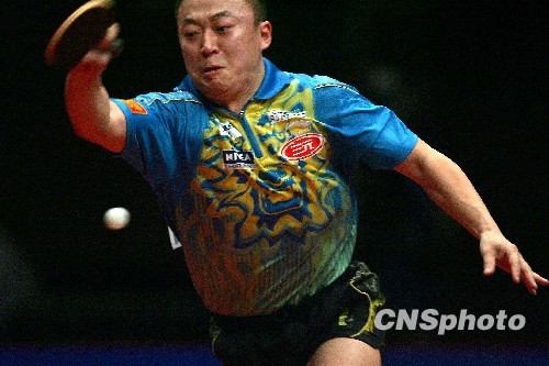 8月26日晚,三元食品-2009欧洲亚洲全明星乒乓球对抗赛在北京月坛体育馆展开第二天的争夺,由马琳、马龙领衔的亚洲明星队对阵由佩尔森、萨姆索诺夫率领的欧洲明星队。图为在当晚的第二场比赛中,代表亚洲明星队出战的中国选手马琳3比2险胜希腊悍将格林卡。中新社发 富田 摄