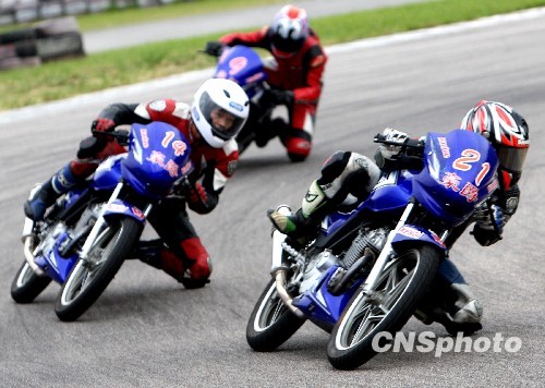 10月12日,2009年全国公路摩托车锦标赛(CRRC)第四站暨年终总决赛在深圳极速赛车场举行。本站比赛将决定各组别的个人及车队年度总冠军归属。这也使得本站比赛从排位赛开始就显示出了浓烈的竞争气氛。图为125CC组预赛场景。中新社发 赵振清 摄