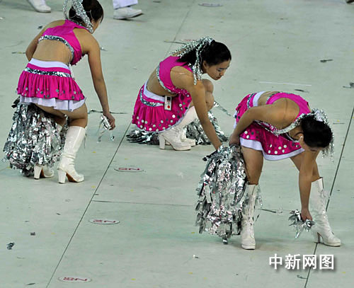 中新网10月17日济南电(记者 贾国荣) 几位参加济南第十一届全运会开幕式团体操表演的美少女,散场时留在最后,尽管疲惫不堪,依然跪在场地上捡起身边周围的垃圾带走。