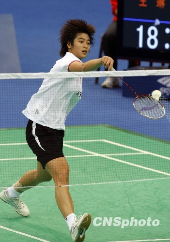 10月17日,第十一届全运会羽毛球女子单打比赛在青岛赛区举行,浙江队王琳与江苏队王适娴苦战三局,最终王琳夺冠。中新社发 张宇 摄