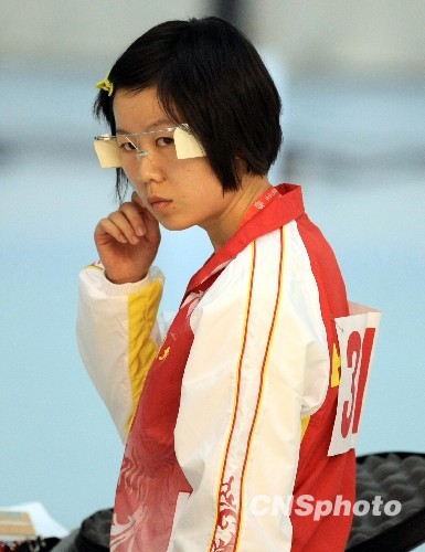 10月18日,在全运会女子十米气手枪比赛中,湖北“黑马”童欣力克奥运冠军郭文珺、陈颖以及国家队名将任洁等,以487环的成绩夺冠。中新社发 汤彦俊 摄