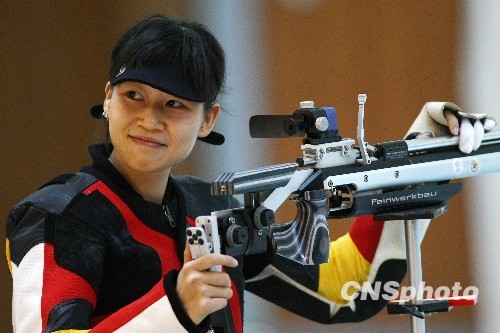10月19日,全运会射击赛场女子10米气步枪决赛展开争夺,来自广东的易思玲(图)以504.1环摘得金牌,四川选手喻丹以及陕西选手武柳希分别获得第二和第三名,成绩分别是503.6环和502.8环。奥运冠军杜丽和与河北名将赵颖慧纷纷爆冷无缘决赛。中新社发 富田 摄