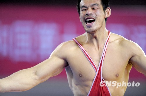 10月19日,黑龙江选手刘德利在山东济南历城体育馆战胜上海选手刘昊,夺得第十一届全运会120公斤级男子古典式摔跤冠军。中新社发 陈文 摄