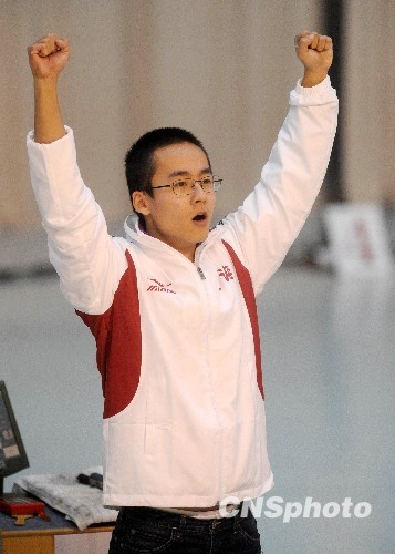 10月20日,全运会射击比赛,在结束的男子10米气手枪比赛中,上海队选手麦嘉杰以687.9环的总成绩获得冠军。山东选手谭宗亮和内蒙古选手韩庆洲分获2、3名。中新社发 张侃 摄