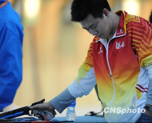 10月20日,山东济南,09全运会射击男子10米气手枪预赛,奥运冠军庞伟遭淘汰,和妻子杜丽一样,庞伟也遭到了媒体围攻。中新社发 吴俊 摄