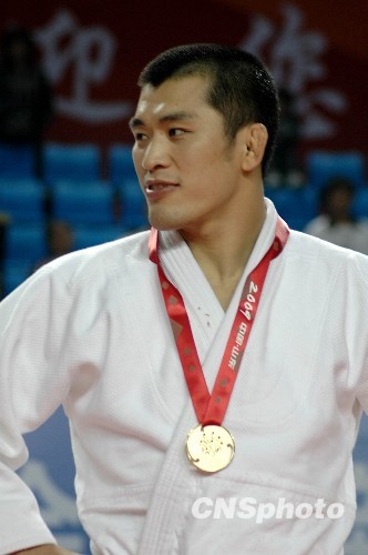 10月22日,山东滨州,在第十一届全运会柔道男子90公斤级决赛中,河北队选手何焰柱夺得冠军,江苏队选手徐志明获得亚军,内蒙古选手乌格德勒夫获得季军。中新社发 梁宝海 摄