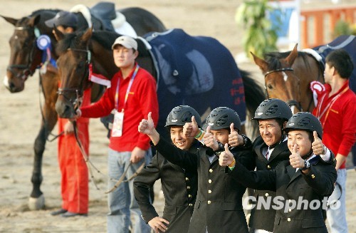 10月23日,第十一届全运会马术三项赛团体赛在山东济南举行,上海队最终获得冠军。中新社发 张宇 摄