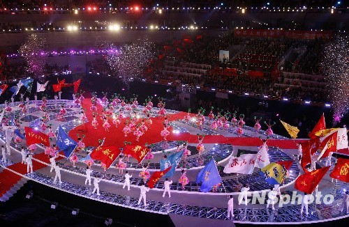 10月28日,第十一届全运会闭幕式在奥体中心体育馆举行。本届全运会共有1人1次1项创世界纪录,6人8次4项超世界纪录,3队12人21次创16项亚洲纪录,5队29人52次创39项全国纪录,5人12次创8项全国青年纪录。中新社发 汤彦俊 摄