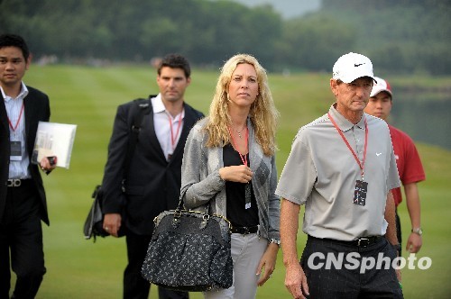 十一月二十八日,世界第一高尔夫球手泰格伍兹的私人教练汉克.哈尼(右二)莅临欧米茄观澜湖高尔夫世界杯奥拉沙宝球场,并亲自为高尔夫爱好者传授球技。中新社发 陈文 摄