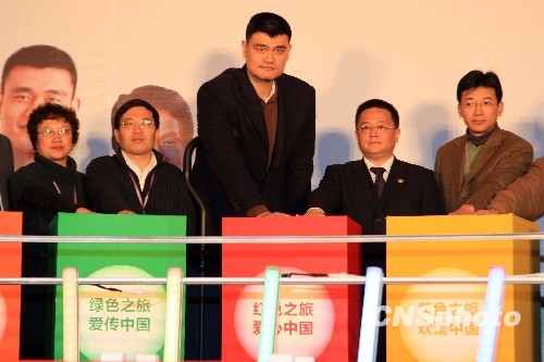 12月21日,姚明在上海参加“明星带你看世博”大型公益活动启动仪式,姚明当场还宣读了《助力绿色世博共享美好未来》倡议书。该活动是由世博形象大使姚明、成龙、郎朗共同发起。中新社发 潘索菲 摄