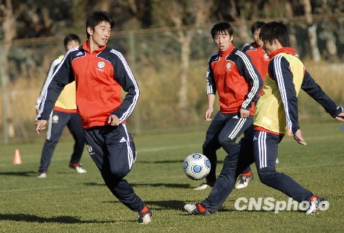 1月5日,中国男足国奥队开始在昆明海埂训练基地展开为期3周的训练。图为5日下午,国奥队“上山”后进行首场训练。中新社发 田洪 摄