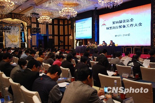 广州亚运会场馆运行筹备工作大会一月十五日上午在广州星河湾酒店国际会议中心举行,标志着组委会职能部门为单位的筹备体制向以场馆为单位赛时运行体制转变。中新社发 柯小军 摄