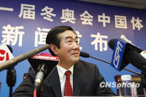 1月28日,第二十一届冬奥会中国体育代表团在北京国家体育总局召开新闻发布会宣布中国冬奥代表团正式成立。本次中国代表团将派出182人参赛,其中运动员91人,30名男队员,61名女队员,是参赛历史上代表团规模最大、人数最多的代表团。国家体育总局冬季运动运动管理中心主任、代表团秘书长赵英刚对于最关注的夺牌目标问题表示“希望不低于上届奥运会,在上届奥运会奖牌数上有所发展。”中新社发 盛佳鹏 摄