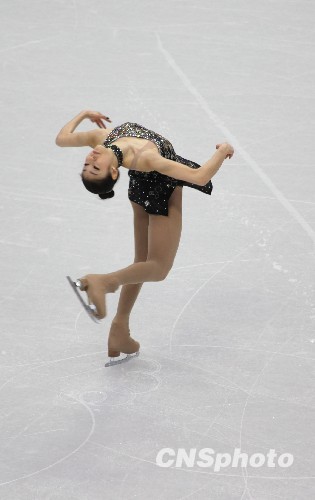 韩日花样滑冰公主金妍儿、浅田真央23日在一场令人赏心悦目的高水平对决中,均发挥出最高水平,在冬奥女子单人滑短节目比赛中,分别以78.50和73.78的高分暂列前二名。图为金妍儿在比赛中。中新社发 赖海隆 摄