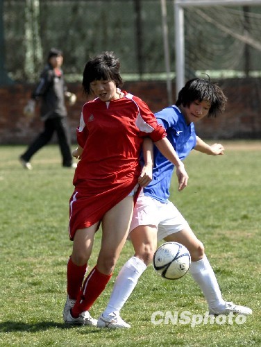 3月1日下午,河南与河北女足球员正在教学比赛中。2010年全国女足海埂春训近期在昆明拉开序幕,参加春训的14支俱乐部球队近400名球员在海埂基地开始高原训练,春训将持续到3月23日结束。中新社发 田洪 摄