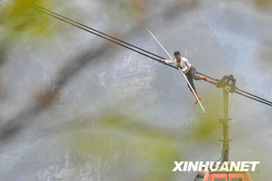 组图:中瑞高空钢丝王对决 双双中途弃战(4)
