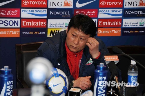 图为主教练唐尧东沮丧的表情。中新社发 刘冬 摄
