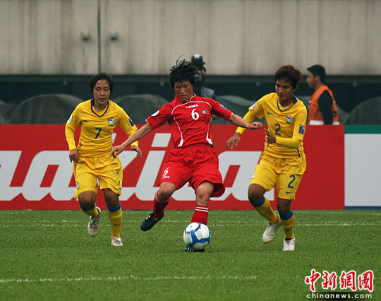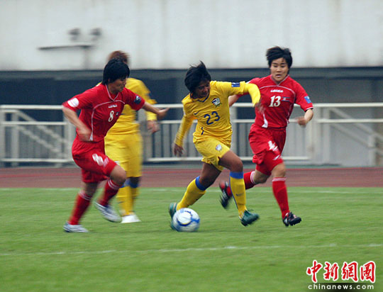 中新网成都5月20日电(记者刘忠俊 杨杰 刘贤)5月20日下午,2010年女足亚洲杯A组比赛在成都体育中心拉开战幕,亚洲劲旅朝鲜女足迎战泰国女足。开场3分多钟朝鲜队17号前锋全明花率先攻进第一球,随后10号前锋金英爱再进一球,上半场朝鲜队以2:0暂时领先。今晚日本女足将与缅甸女足展开对决。