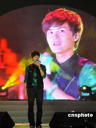 5月30日晚,吴克群“天声一对”歌友会在北京理工大学体育馆举办。以爱情为主题的歌友会吸引了近3000名大学生参加。中新社发 潘旭临 摄