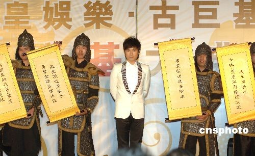 5月31日,古巨基在北京举行“登基大典”,宣布正式签约英皇。发布会上,古巨基端坐皇帝龙椅,8名武士跟随御驾,派头十足。现场还有舞狮助阵,气氛热烈。英皇娱乐表示将会把古巨基的事业推向更高,除了会继续为他推出个人音乐专辑,更准备落重本为古巨基开拍电影,助其实现自导、自演的愿望。据香港媒体报道,基仔以2000万港元天王价跳槽,签3年合约。英皇还豪掷200万港元为基仔在北京和澳门召开签约记者会。发布会上有记者问基仔是否会与谢霆锋争“一哥”,古巨基大方表示,名誉并不重要,重要的是个人要努力、有诚意。图为古巨基端坐皇帝龙椅“登基”英皇娱乐。中新社发 李学仕 摄