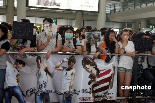 六月五日,大批歌迷在香港国际机场等候偶像韩国著名歌星Rain。当日,Rain抵达香港准备在六月六日举行演唱会。中新社发 洪少葵 摄
