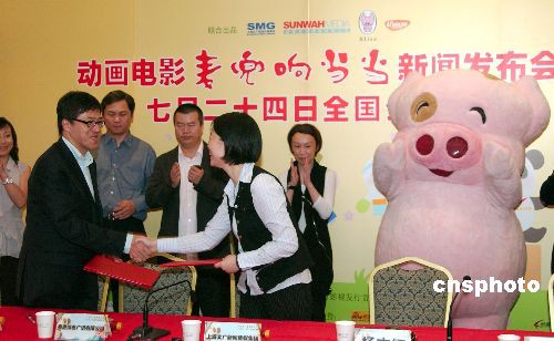 6月18日,深受影迷喜欢的动画人物“麦兜”将于今年暑假正式登陆大陆银幕。18日下午,麦家碧携“麦兜”出席上海国际电影节发布会,自称在生活中自己是麦兜,先生是麦太。《麦兜》大陆投资方上海文广新传媒集团在《麦兜响当当》的新闻发布会上宣布,这部动画电影将于7月24日在全国公映。 中新社发 张马赫 摄