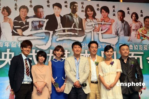 6月19日,民族奇幻影院动画片《马兰花》在上海举行首个动画电影慈善首映式,吸引两岸三地的明星黎明(中)、林志玲(左三)、陈好(右二)、周立波(左)、高源(右三),以及影片主唱吴克群(左)、许茹芸(左二)等亲自到场助阵。中新社发 潘索菲 摄
