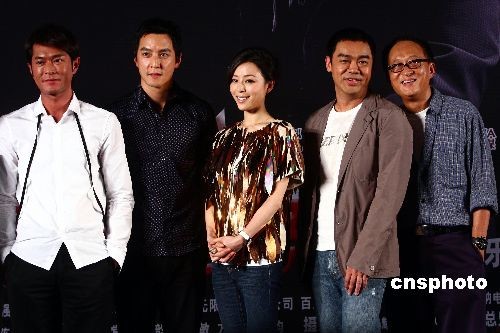 7月20日,影片《窃听风云》在京举行首映记者会,主演刘青云、吴彦祖、古天乐三大帅哥携手张静初、监制尔冬升、导演麦兆辉一起亮相。中新社发 李学仕 摄
