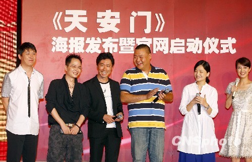8月5日,为迎接新中国成立60周年,中影集团的另一部红色献礼片《天安门》海报发布暨官网启动仪式在北京饭店举行,导影叶大鹰率潘粤明、郭柯宇、徐啸力等主要演员出席活动。浩大逼真的历史场景成为《天安门》的一大亮点,叶大鹰认为《天安门》的技术制作将中国电影制作水准提升到了一个新的高度。中新社发 郑雄增 摄