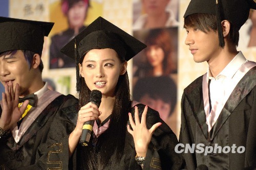 8月9日,青春励志电影《我们毕业的夏天》在北京举行开机发布会,琼瑶女郎张嘉倪携手好男儿吴建飞出演男女主角。该片以反映当代中国大学生的爱情、亲情、友情为主题。中新社发 满会乔 摄