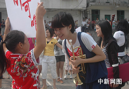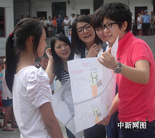 8月24日,2009年“快乐女声”四强来到张家界武陵源天子山苏州希望小学举行牵手希望工程公益活动。此次公益之行,四位“快女”不仅向学校赠送了一批音乐设备,走进校舍和学生们开展交流互动活动,同时还专程到4名贫困学生家庭走访慰问。王传殊 吴勇兵 摄
