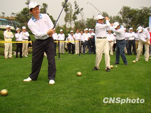 10月14日,第六届中国华商高尔夫友谊赛在成都市开赛。该赛事由中国侨商投资企业协会主办、四川省侨办、四川华商会承办。该赛事被誉为中国侨界高尔夫球的最高联谊赛事活动,至今已在北京、上海、天津、重庆、深圳等城市成功举办了5届。本届“高球”赛事刚好在第十届中国西部国际博览会前举办,旨在让侨商在球艺切磋、友情交流中,寻找四川重建商机,共谋发展。图为开球仪式现场。中新社发 王萌 摄
