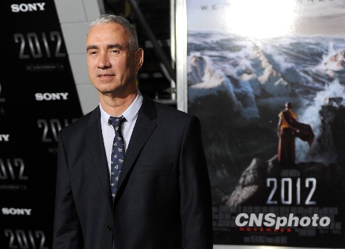 好莱坞灾难大片《2012》本周末成为北美电影市场的唯一幸存者。首映三天累计收获六千五百万美元,称霸北美周末票房榜,更在全球狂揽二点二五亿美元开画票房。图为影片导演、好莱坞著名灾难片导演罗兰·艾默里奇出席《2012》洛杉矶首映式。中新社发 张炜 摄