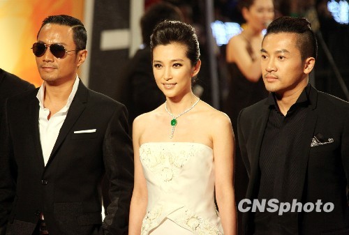 11月28日,第46届金马奖颁奖典礼在台北县举行,《风声》主要演员张涵予、李冰冰、苏有朋走星光大道,出席颁奖典礼。 中新社发 黄少华 摄